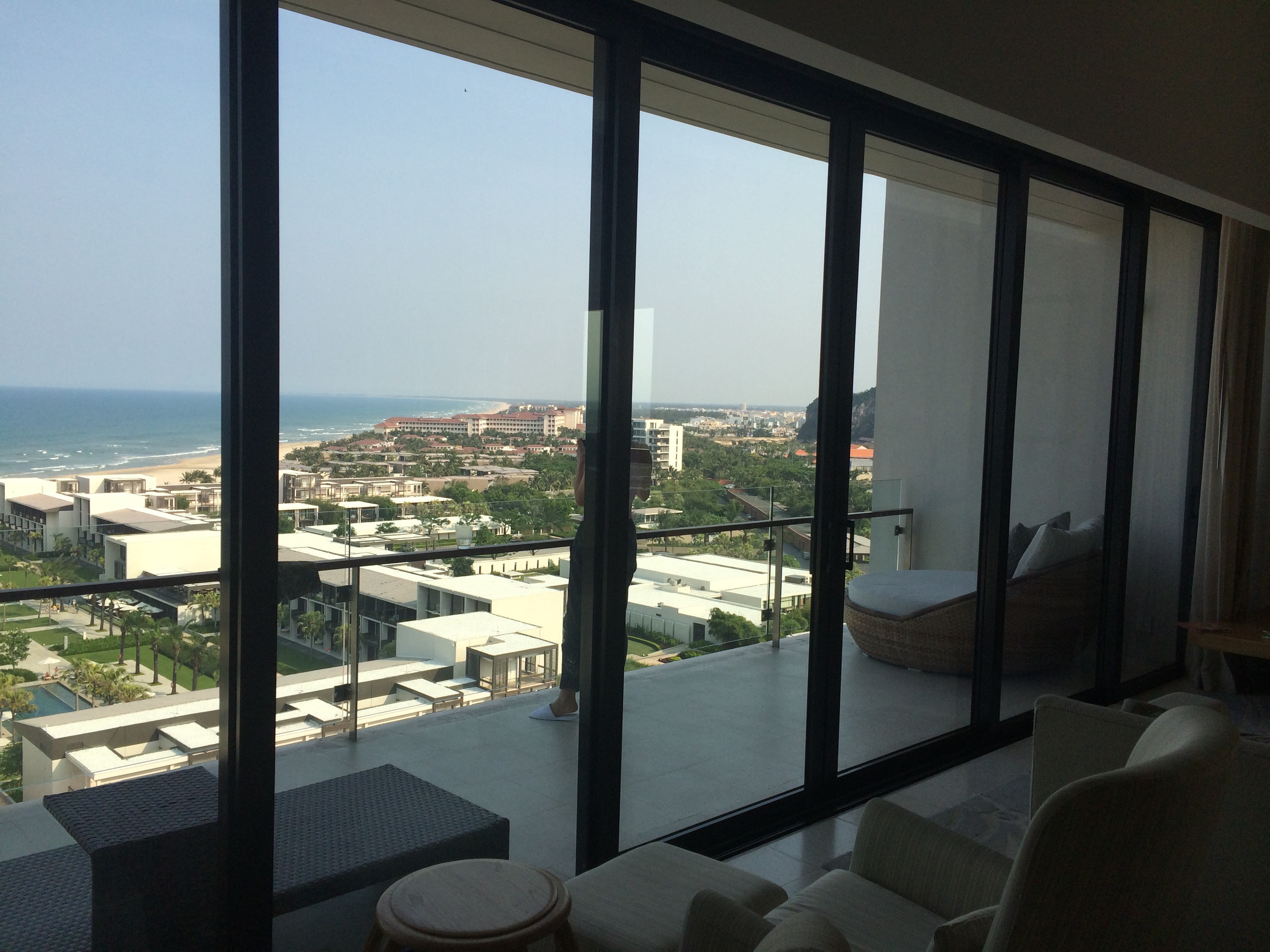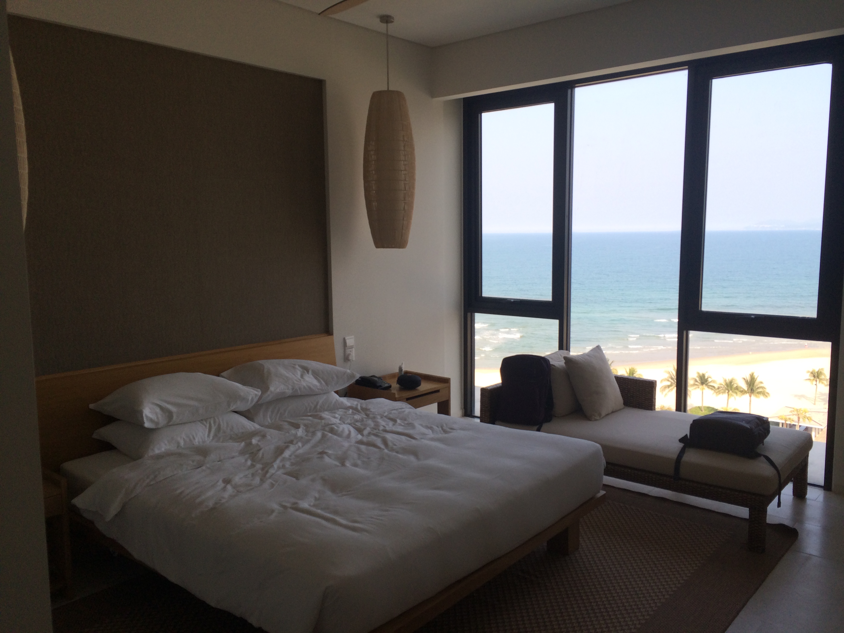 果然一抵達越南,我就覺得妹妹怪怪的. 她特別的安靜,不想吃東西,一直眉頭深鎖的. 早上帶她去游泳池之後,她也沒有特別開心. 直到下午我才確定她生病了. 雖然假期一半的時間都關在飯店裡面陪她休息,但是飯店的的硬體設施都讓我們覺得挺滿意的. 飯店距離機場差不多二十分鐘. 面積超廣的,但是附近什麼都沒有,去哪裡都需要叫計程車,如果是喜歡到處走走的旅客,可能就不太適合。 我們已經打算跟小朋友大部分時間都窩在飯店,所以對我們而言沒差。 這是個十分適合有小朋友的家庭來住的飯店. 我們跟另外一對夫妻好友share 一個兩房的公寓. 除了view 超棒之外,裡面有客廳,廚房,和餐廳,唯一美中不足的是沒有洗衣機. 這是我們住的兩房公寓.