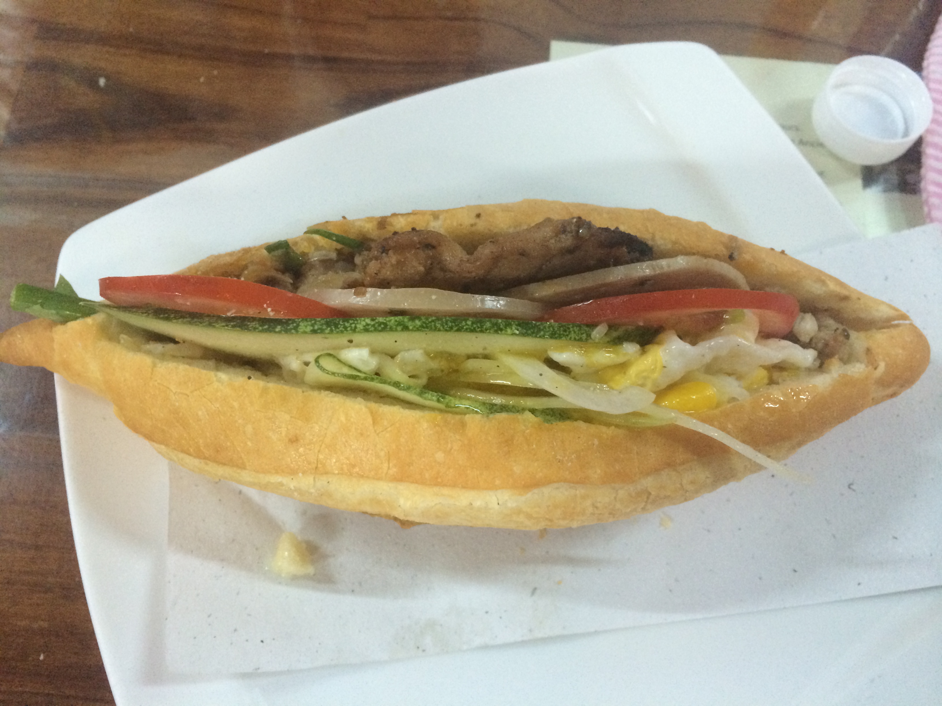 看似簡單的三明治,但一口咬下去,有好多層美味。這跟我之前在越南吃得不太一樣,因為抹上了一種他們自製的辣醬,讓整個三明治味道更豐富。在店裡的時候,妹妹剛好醒來,接下來的二十分鐘都大哭大鬧,所以我也只吃了兩口就忙著哄她,但是吃完之後讓我回味無窮的是那個清脆的法式麵包。